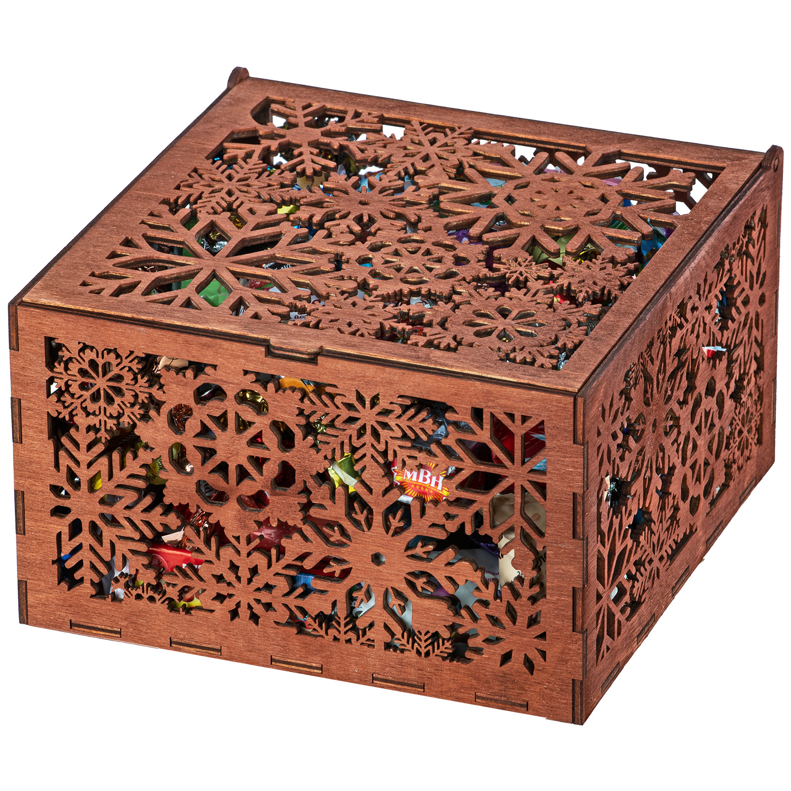 Интересный вариант новогоднего подарка – «В заснеженных краях Легенды Москвы». Он представлен в разделе Дерево. Отлично подойдет на подарок в 2026 году с символом Лошадь. Внутри такого презента находится кондитерский набор весом 1000 граммов.