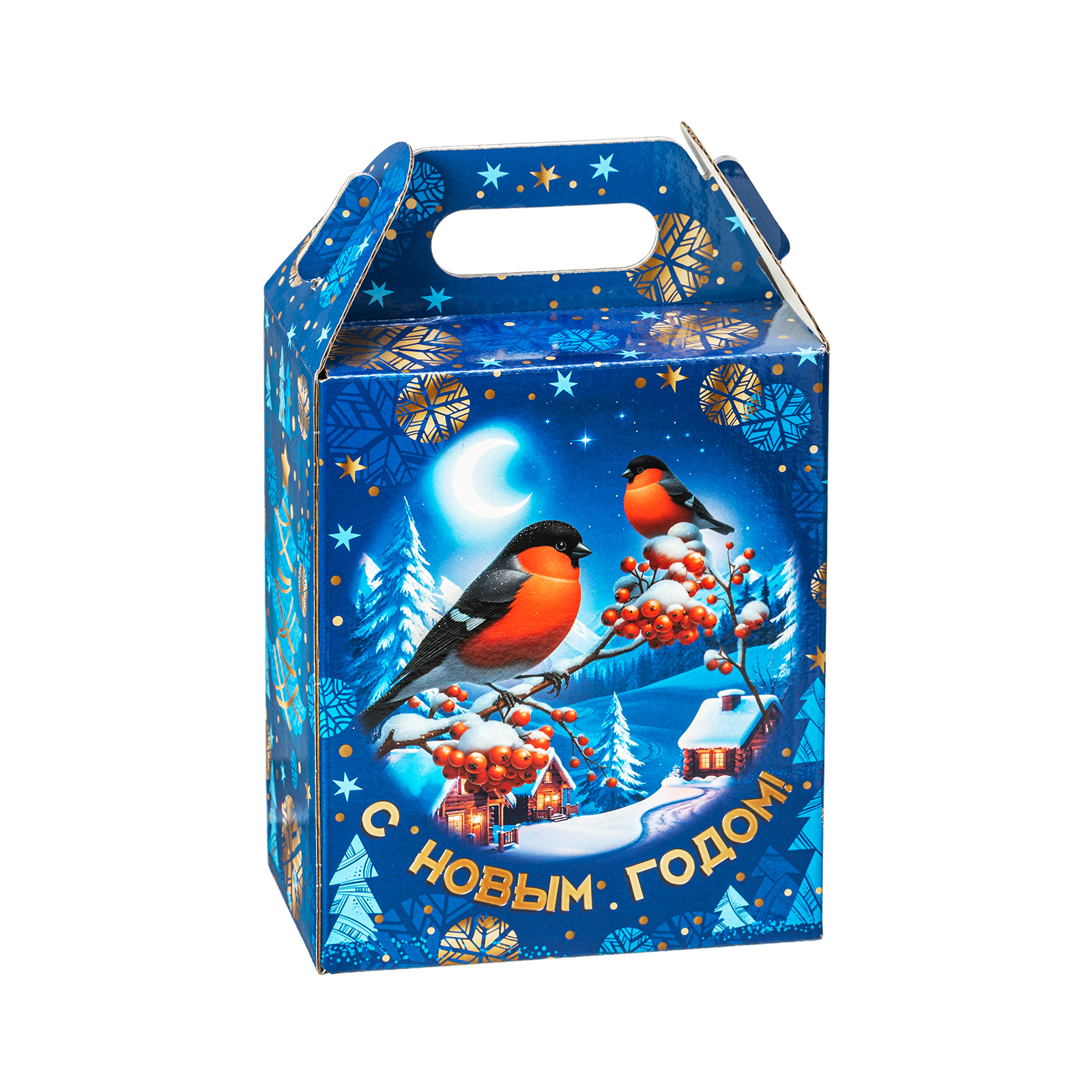Интересный вариант новогоднего подарка – «Вестники зимы». Он представлен в разделе Картон. Отлично подойдет на подарок в 2026 году с символом Лошадь. Внутри такого презента находится кондитерский набор весом 1000 граммов.